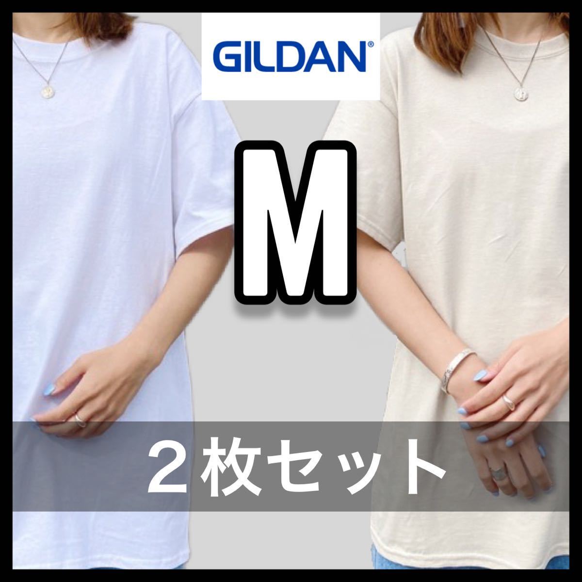 - 新品未使用 ギルダン 6oz ウルトラコットン 無地半袖Tシャツ 白 ホワイト ベージュ 2枚セット Mサイズ ユニセックス GILDAN