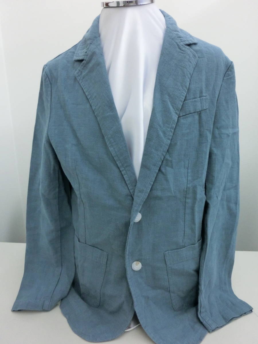 - ☆USED◆テーラーカラーシングルジャケット◆綿&麻◆グリーン系◆XL