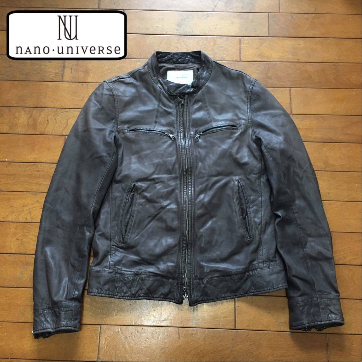 - ★【 nano-universe 】★ 羊革 レザー シングルライダースジャケット★サイズM★O636