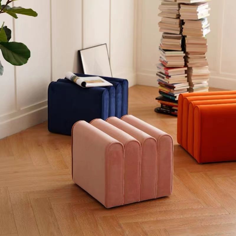 - 一人掛け 小型 コンパクト ソファ スツール 椅子 チェア 背もたれなし キャスターなし 布 ふわふわ おしゃれ 木 無垢材 北欧