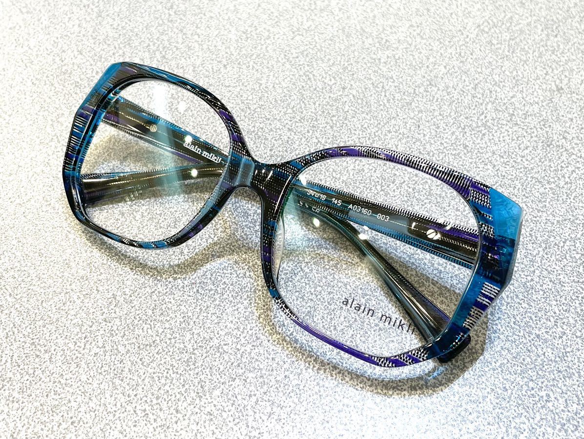 > 新品 alain mikli アランミクリ イタリア製 ブランド ハンドメイド バネ蝶番 バネ丁番 セル ブルー 青 大きい 大きめ
