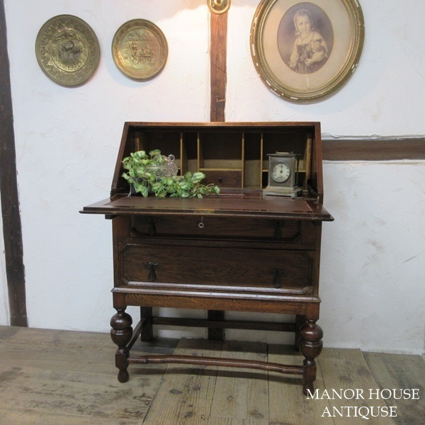 - イギリス アンティーク 家具 ライティングビューロー 本棚 デスク 机 収納 木製 オーク 英国 BUREAU 6321d