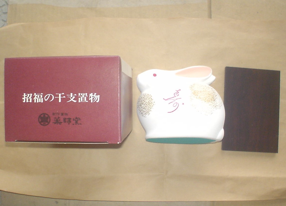 - 招福の干支置物 卯 置台付き 卯年用置物 薬師窯