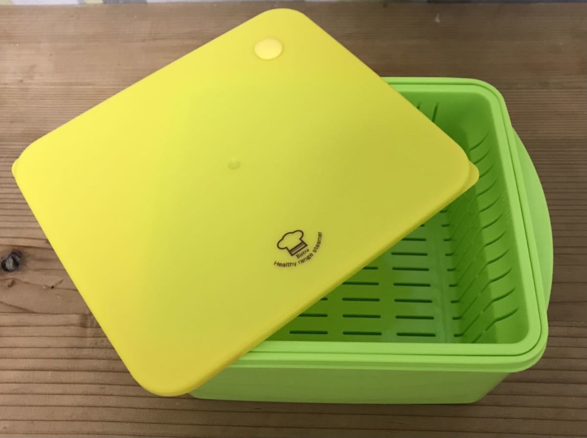 - 【新品・未使用】ヘルシーレンジスチーマー★イエロー&グリーン★サイズ約W18×H8.5×D14.5cm★MIクリエーションズ株式会社③