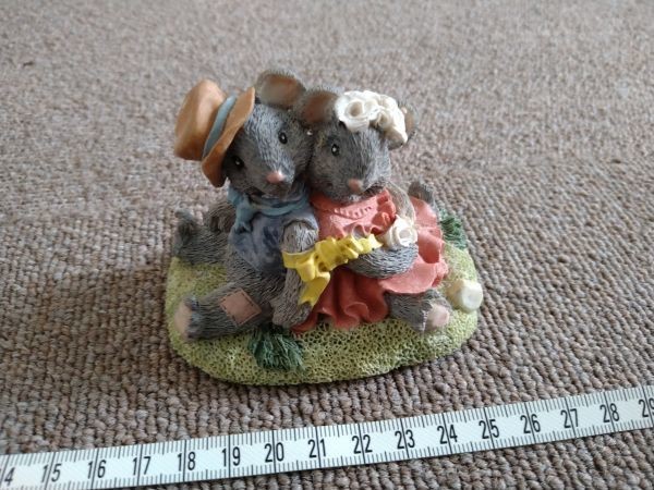 - 陶器 ねずみ 夫婦 美術芸術アートインテリアアンティーク動物写実彫刻 n26