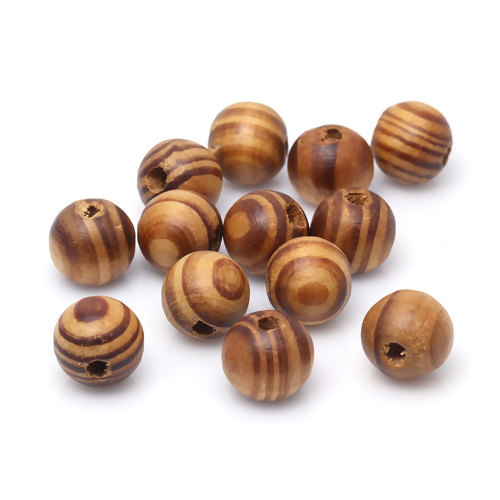 - 木目ウッドビーズ 5個入(コーヒー系色)木製ビーズ 天然素材ナチュラルビーズ/16mm