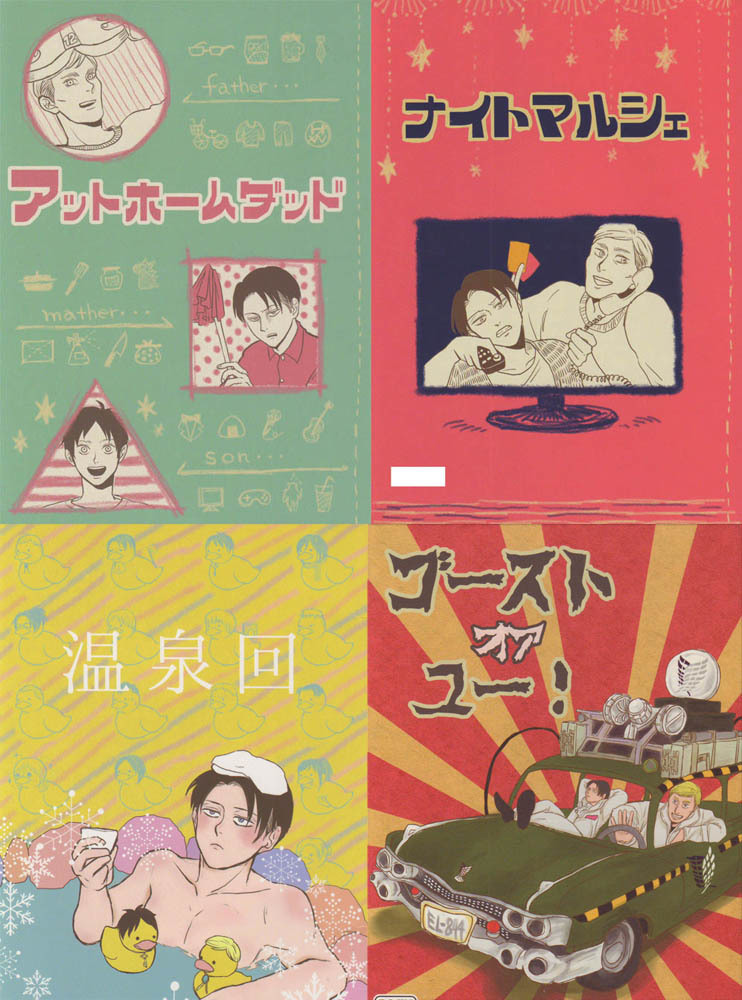- 進撃の巨人同人誌 AVO!発行 「アットホームダッド」「ナイトマルシェ」「温泉回」他 4冊セット エルリ エルヴィン×リヴァイ