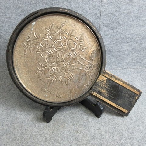 銅鏡です。寸法は直径24cmです。状態は主観ですが良いと思います。100サイズ、ゆうパックで発送を予定しています。商品画像が実際の商品そのものですので、ご入札前にしっかりとご確認いただきますようお願いいたします。タイトルと画像が異なる場合、当方のミスの可能性がありますので、お手数をおかけしますが、その際にはご連絡いただければ幸いです。また、気になる部分や詳細な画像が必要な場合は、質問からお気軽にご連絡ください。配送方法については、通常の配送にはゆうパックやクロネコヤマトを利用します。大型商品や重量のある商品には、ヤマト便や西濃運輸、佐川急便を選択することがあります。軽量で壊れにくい小物には、クリックポストやレターパックを利用することもあります。同梱の場合は送料が変わることがある点、ご了承ください。商品の写真はデジタルカメラや照明、撮影環境により実物の色と異なる場合があります。中古商品であるため、記載しきれない経年劣化や時代の汚れ、傷みなどがある場合がございます。十分なご理解をいただいた上で、ご入札いただけますと幸いです。皆様のご入札を心よりお待ちしております。他にも色々出品中ですので是非ご覧ください。