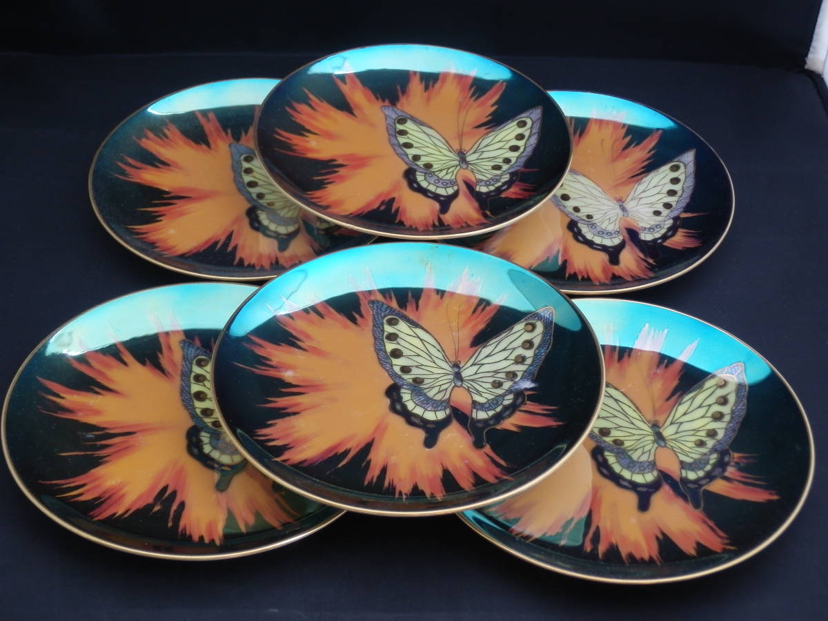 - バタフライ絵柄 ラスター彩仕上げ ブレッドプレート6枚 ☆ オールドノリタケ