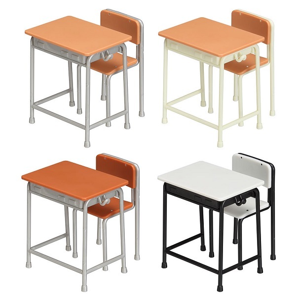 - ガシャプラQ 1/12 スケール 学校の教室 全4種 セット A B C D ライトブラウン ダークブラウン シルバー ホワイト ブラック 机 椅子
