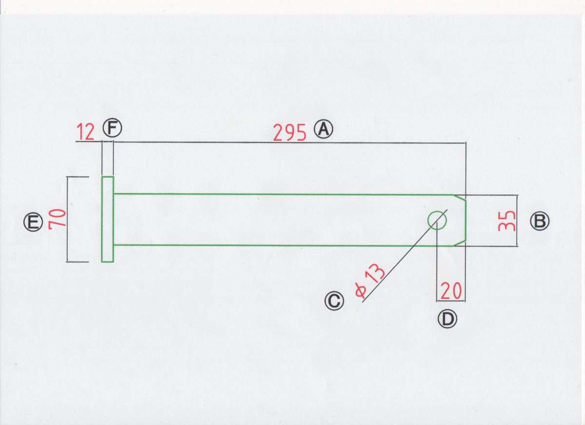 - NO 1563 Φ35用 ツバ下295mm バケットピン 1本
