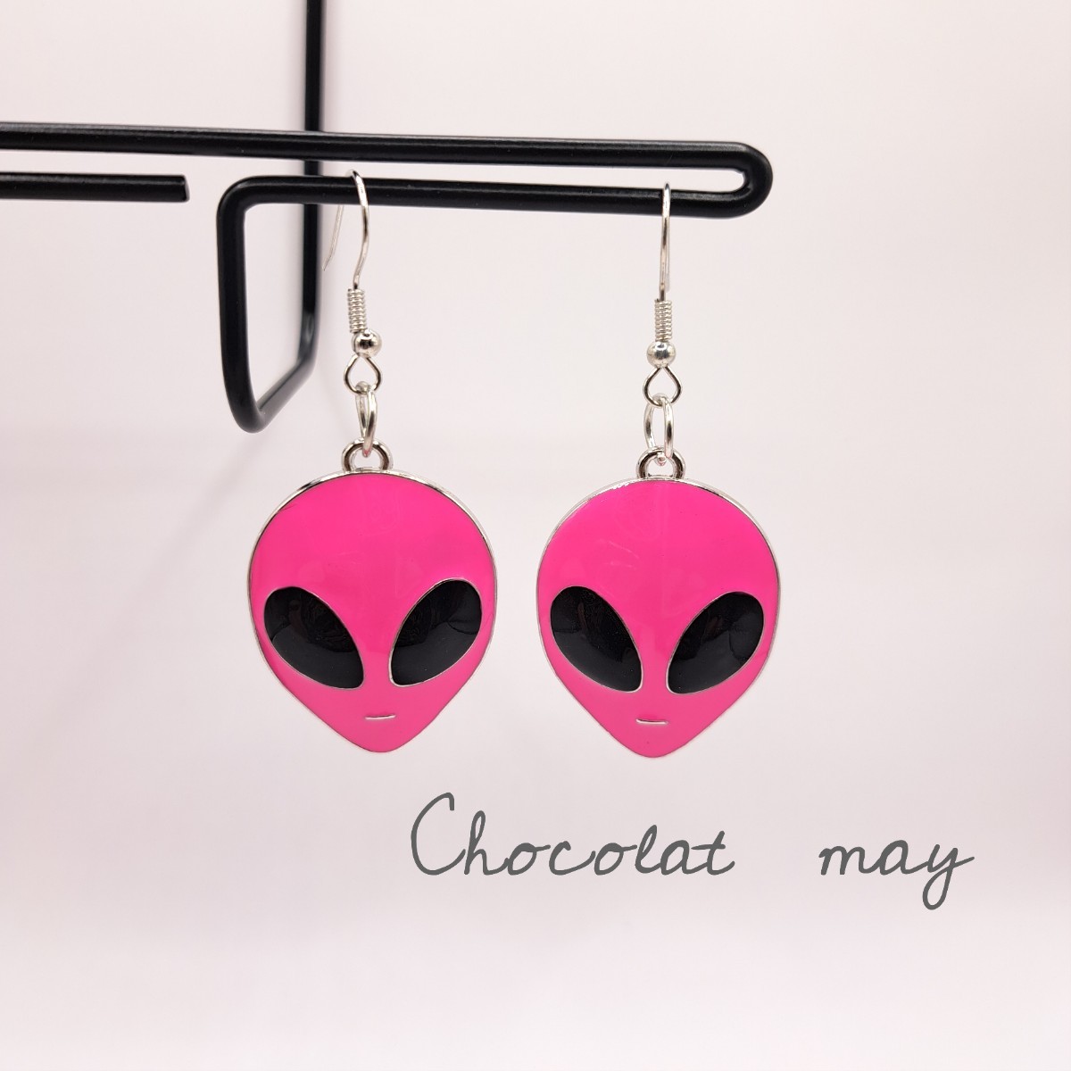- ピアス イヤリング ハロウィン 宇宙人 ホットピンク エイリアン アクセサリー ファッション 小物 仮装