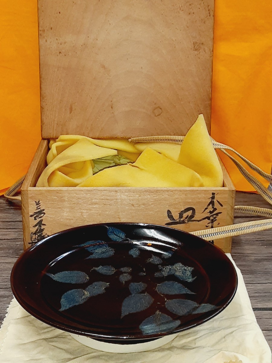 - 秀逸技法 美品 土渕善丕氏作 木の葉天目 皿 共箱 取り上げ新聞記事添付