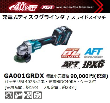 - マキタ 100mm 充電式 ディスクグラインダ GA001GRDX 40V 2.5Ah 新品