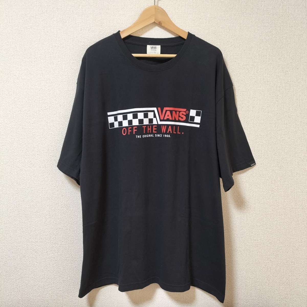 > 美品☆VANS ビッグサイズ オーバーサイズ Tシャツ カットソー 半袖 黒 トップス 綿 コットン BIGロゴ プリントT バンズ スケボー 古着 USED