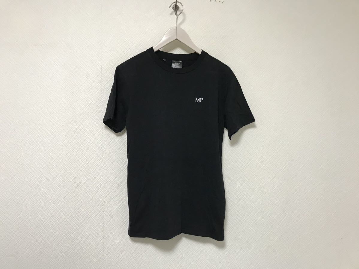 > 本物マイプロテインMPコットンロゴ刺繍半袖TシャツメンズサーフアメカジミリタリースーツビジネスジムウェアスポーツS黒ブラックトルコ製