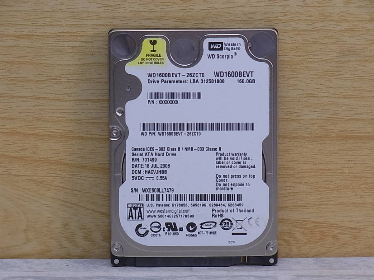 - △F/379●ウエスタン・デジタル Western Digital☆2.5インチHDD(ハードディスク)☆160GB SATA300 5400rpm☆WD1600BEVT☆中古品