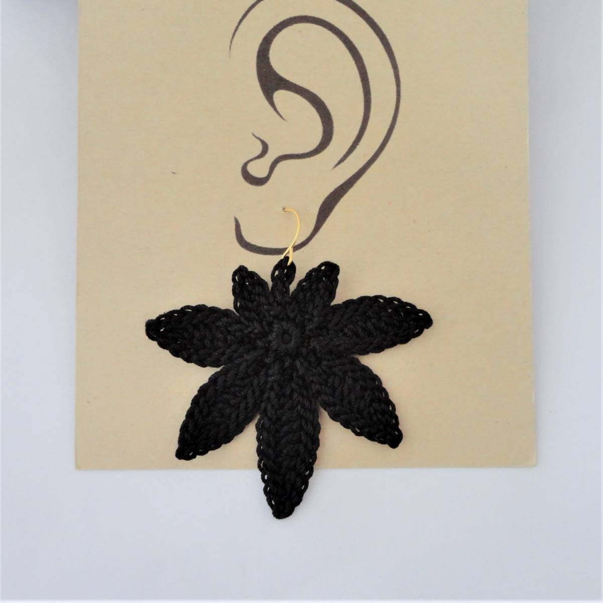 - もみじのピアス*紅葉*モミジ*レース編み*BK*ハンドメイド*b399
