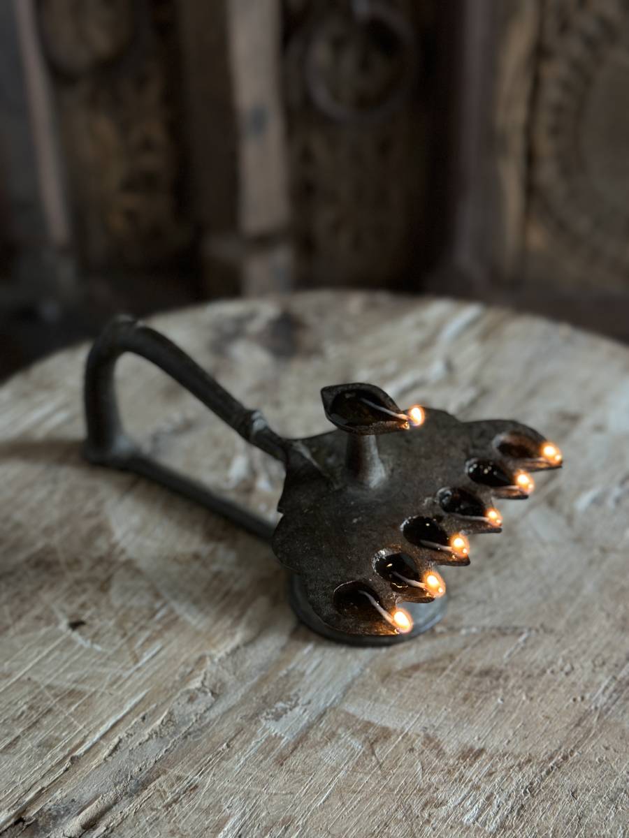 - アンティーク オイルランプ 真鍮製 燈明皿 ランプ インド ハンドメイド インテリア ディスプレイ 真鍮 時代物 古美術 トライバル