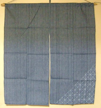 - 即決送料込 送料無料 《P96》 暖簾 のれん 刺し子 新品 綿 布 (青