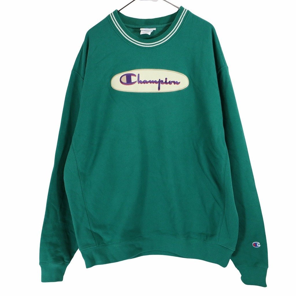 - Champion チャンピオン ロゴリバースウィーブスウェット 刺繍 丸首 トレーナー グリーン (メンズ XL) 中古 古着 O3560