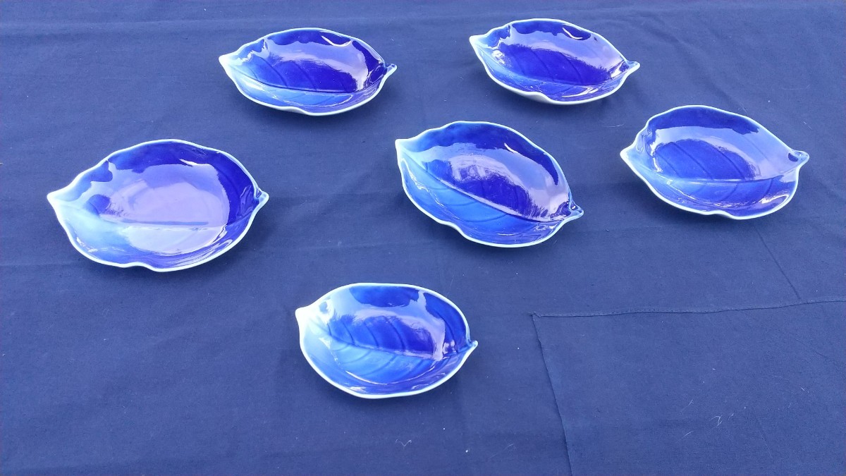 - オールド深川 柿の葉型皿 5枚+小1枚 大正~昭和初期 深川製磁