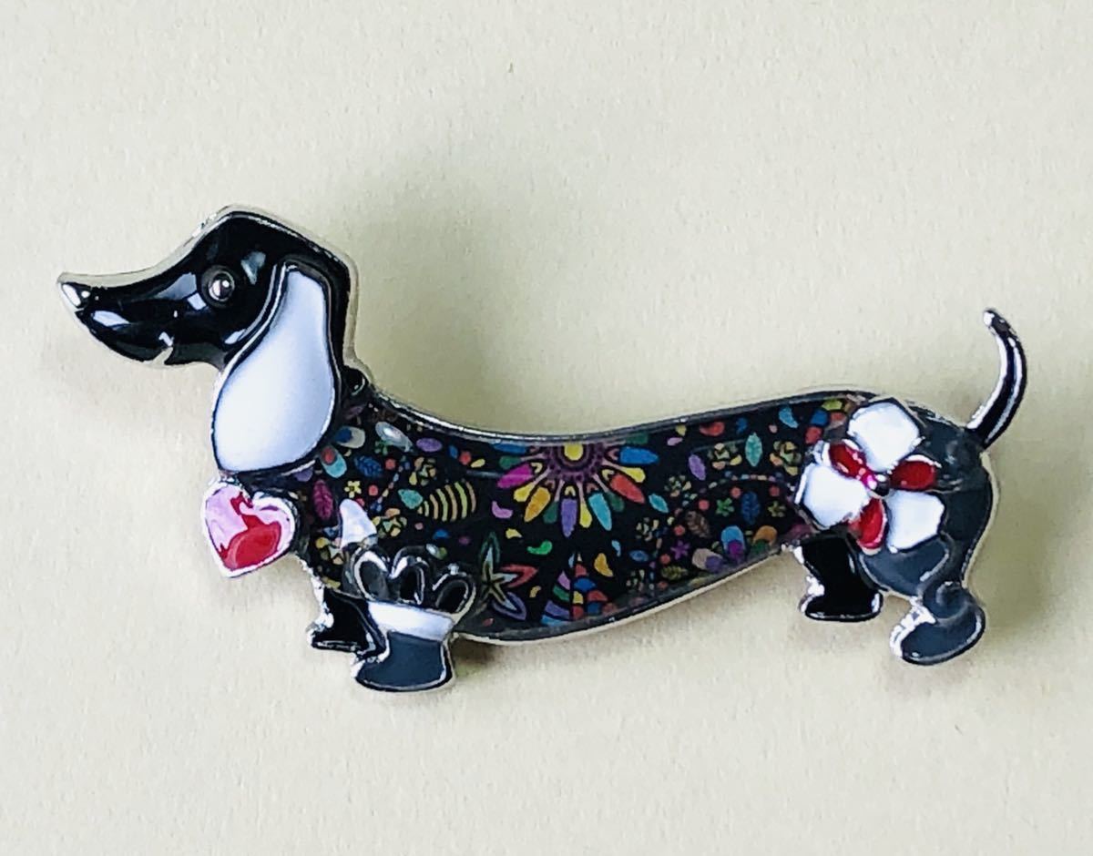 - ダックスフンド ダックス 犬 ブローチ チャーム おしゃれ かわいい カラフル ブラック レッド