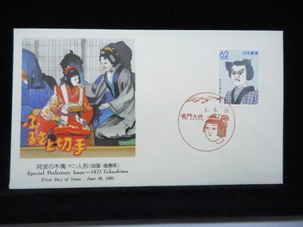 - ふるさと切手 阿波の木偶(でこ) 1991年6月26日 鳴門大代 初日カバー FDC 日本切手 K-123
