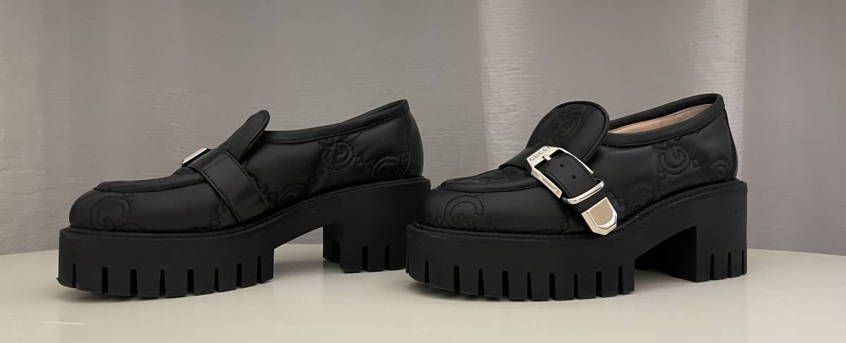 - 【匿名配送】送料込 グッチ 34 1/2 21.5センチ 22 SSサイズ GUCCI レディース 黒 ローファー 靴 厚底 パンプス 女性 シューズ ブラック
