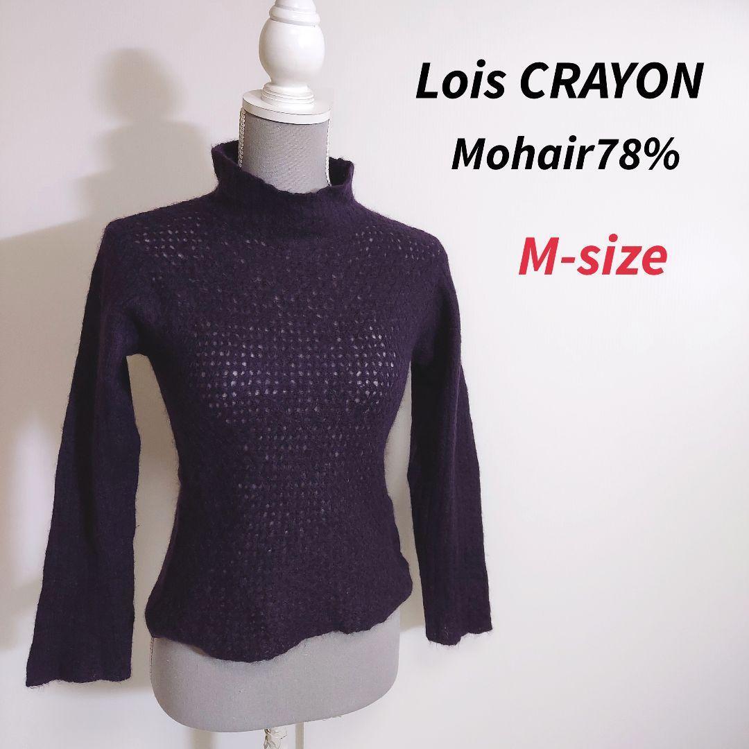> Lois CRAYON モヘア78% ハイネック ニット暗い紫パープル Mサイズ ロイスクレヨン ボディ部分ローゲージ・袖リブ編み81538
