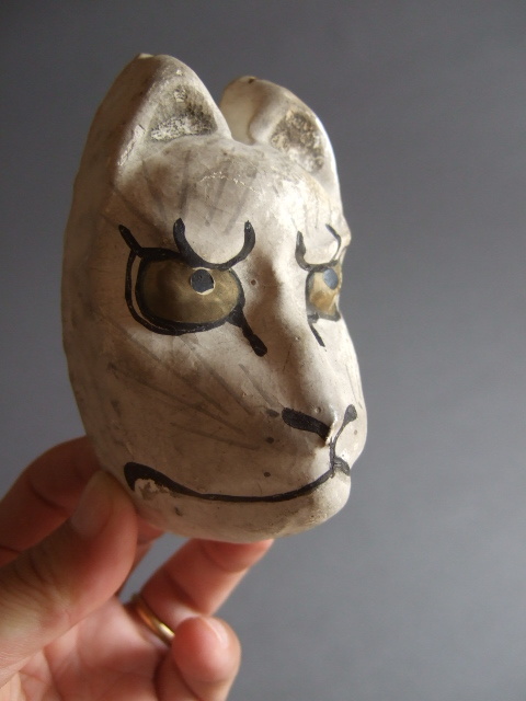 - 超逸品珍品時代のある小型の狐面張り子面郷土玩具白狐面飾り面奉納面神楽面古民藝