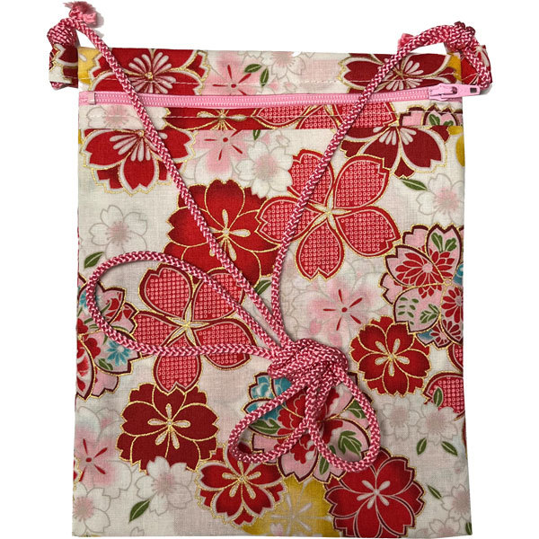 - お祭用品 ポーチ大寸 桜金彩 白練 R2305-40 ショルダー/小物入れ/和柄