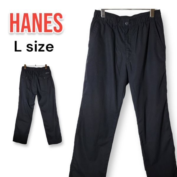 - Hanes ヘインズ ウエストゴム イージー パンツ 黒 ブラック Lサイズ (84〜94cm) フラップポケット 匿名配送