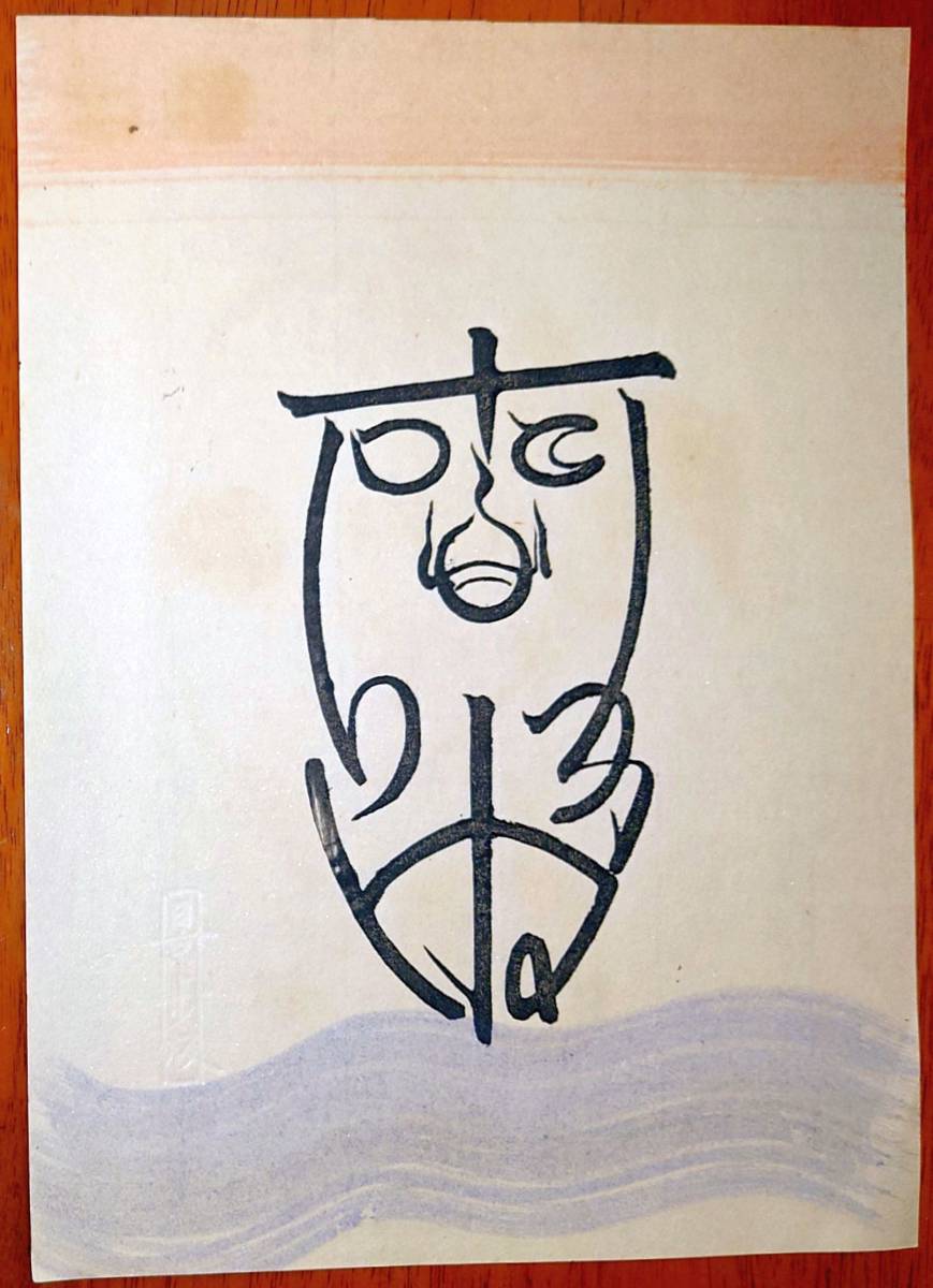 - f23100540〇木版画 宝船 七福神が乗る帆船 新年をあらわす季語〇和本古書古文書