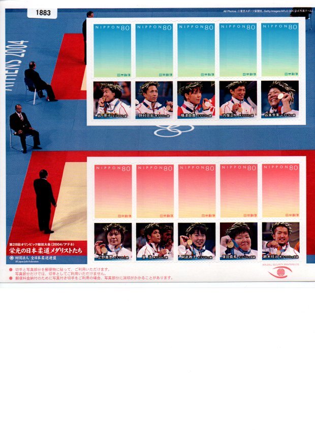 - 1883★フレーム切手 28回オリンピック アテネ大会 栄光の日本柔道メダリストたち 80円x10★