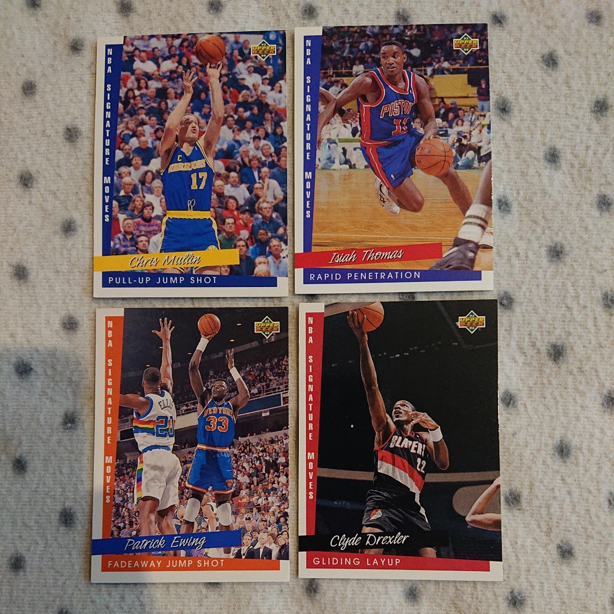 - UPPER DECK 1993 ☆ NBA SIGNATURE MOVES 4枚セット ☆ CHRIS MULLIN , ISIAH THOMAS , PATRICK EWING , CLYDE DREXLER ☆ NBAカード