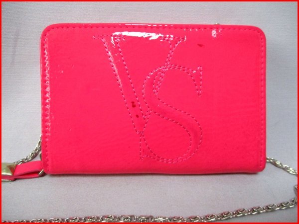 > Victoria's Secret/ヴィクトリアズシークレット◇2way ミニケース 携帯収納 ショルダーチェーン PK カード・小銭 訳有