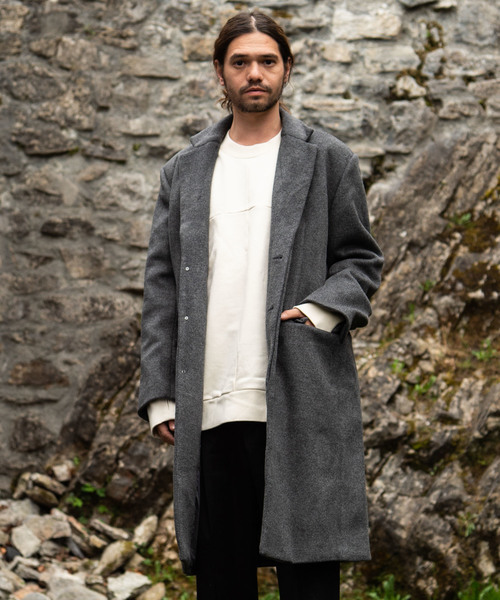 - 新品 タグ 定価 約5万 GLAMB グラム Long chester coat ロングチェスターコート GLAY 灰色 比翼 加工 ロング丈 コート オーバーコート L LL