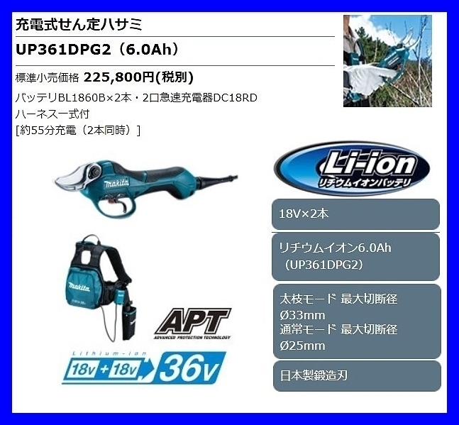 - マキタ 18V 充電式せん定ハサミ UP361DPG2 [18V+18V=36V] ■安心のマキタ純正/新品/未使用■
