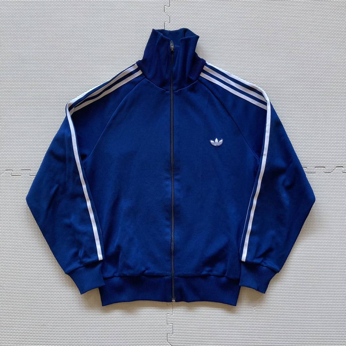- 80s VINTAGE adidas アディダス トラックジャケット ジャージ 3本ライン ネイビー 3号