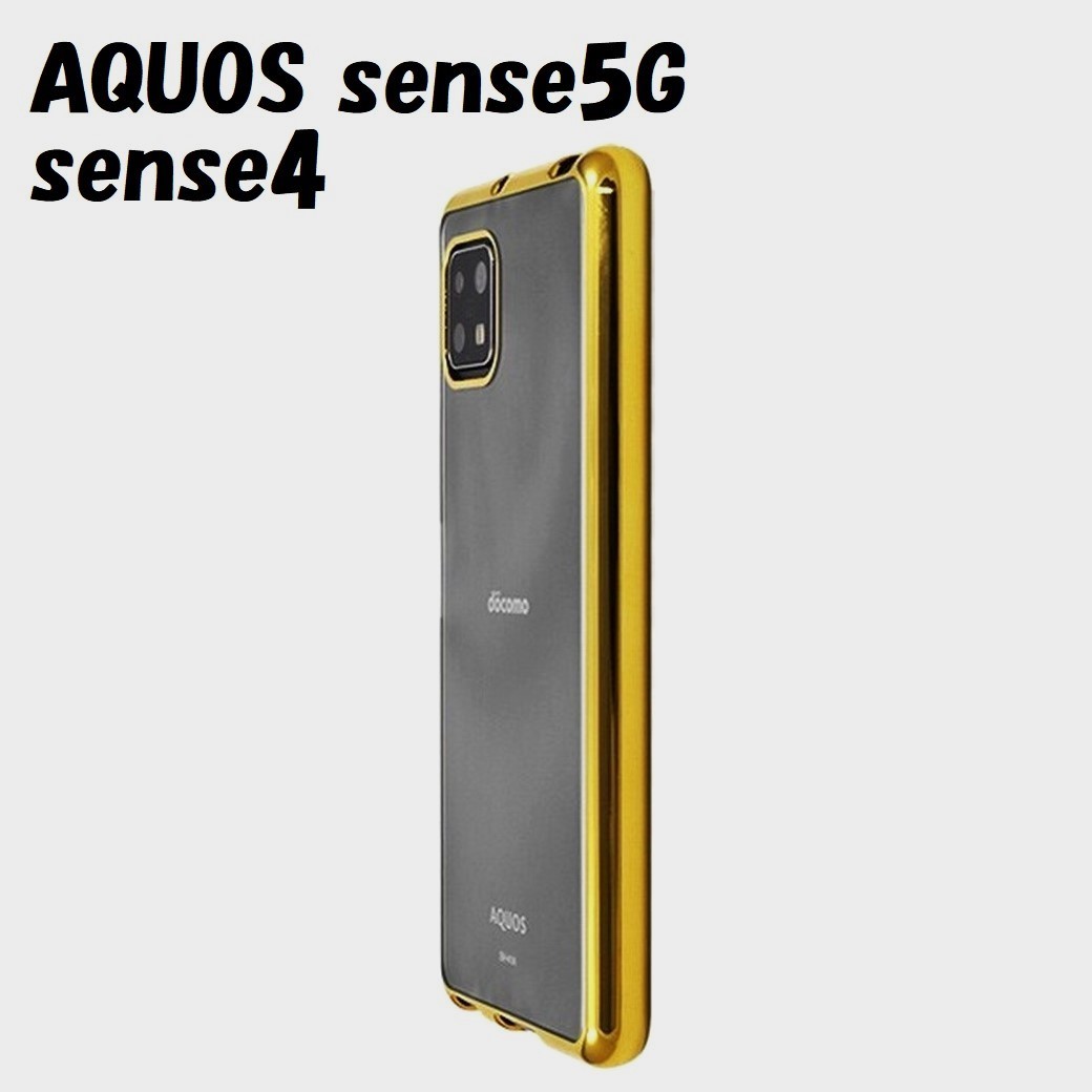 > AQUOS sense4/5G:メタリック カラー バンパー 背面クリア ケース◆ゴールド 金
