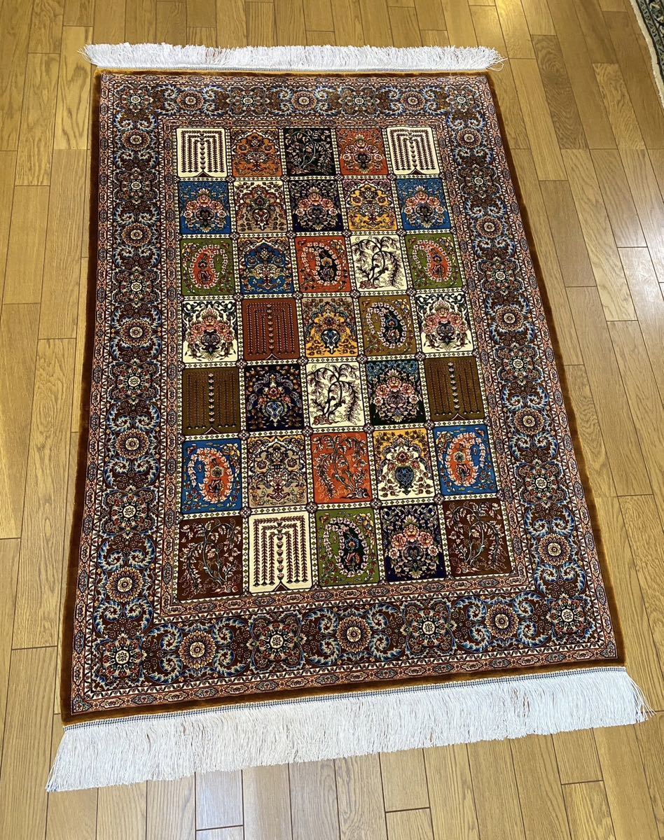> ⑧ ペルシャ絨毯 イラン直輸入品 シルク100% 機械織り・手織り混合 コム産 カーペット [100×150cm] 未使用品 重さ4800g
