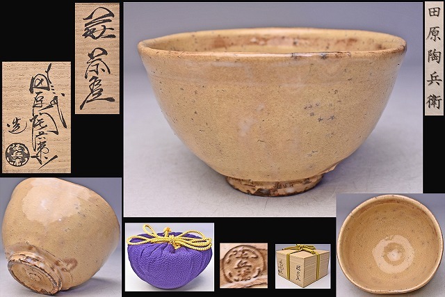 - 田原陶兵衛 13代 ★ 萩 茶碗 ★ 共箱 栞 仕覆 ★ 茶映りの良さそうな温かみのある枇杷釉 ★ 茶道具 ★ 1楽2萩3唐津 ★