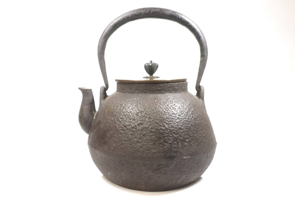- 大正期ビンテージ 龍文堂作 銅蓋 時代丸型鉄瓶 古い薬缶 金属工芸 古民具 民藝 古美術 古道具 TNI510