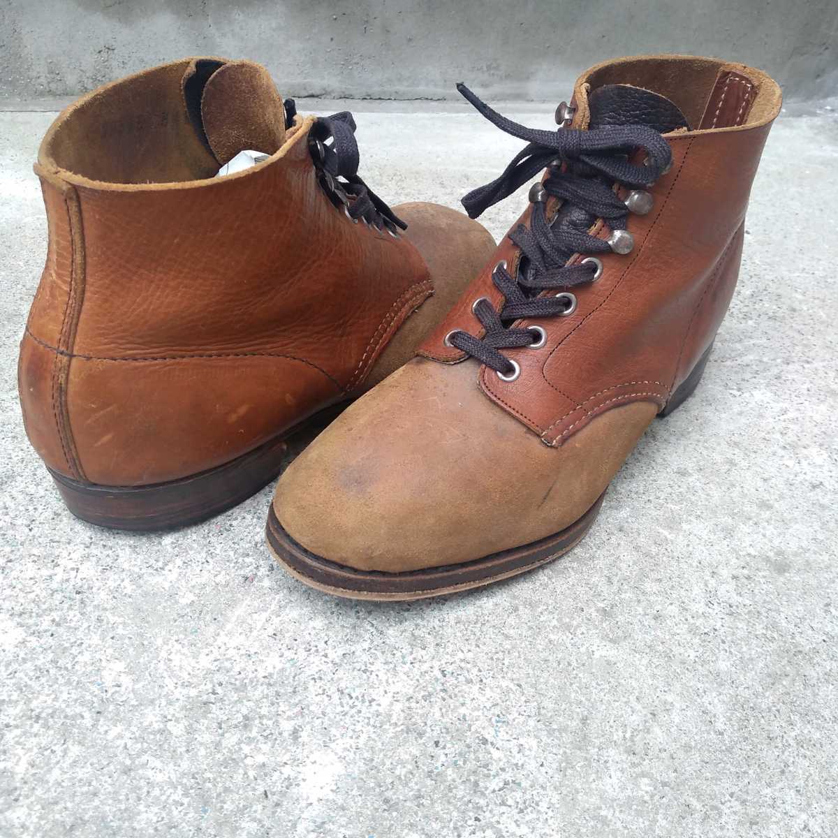 > 【70s】used/unknown/ビンテージ/ヴィンテージ/古着/アメカジ/レザー×スウェード/マウンテンブーツ/トレッキングブーツ/41/27.5/茶/P0228