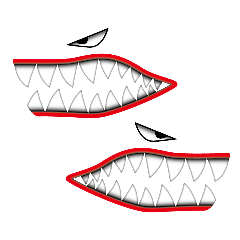 - 影付き 屋外対応 汎用 ステッカー シャークマウス 左右セット 19cmサイズ タンク ヘルメット サイドカバー