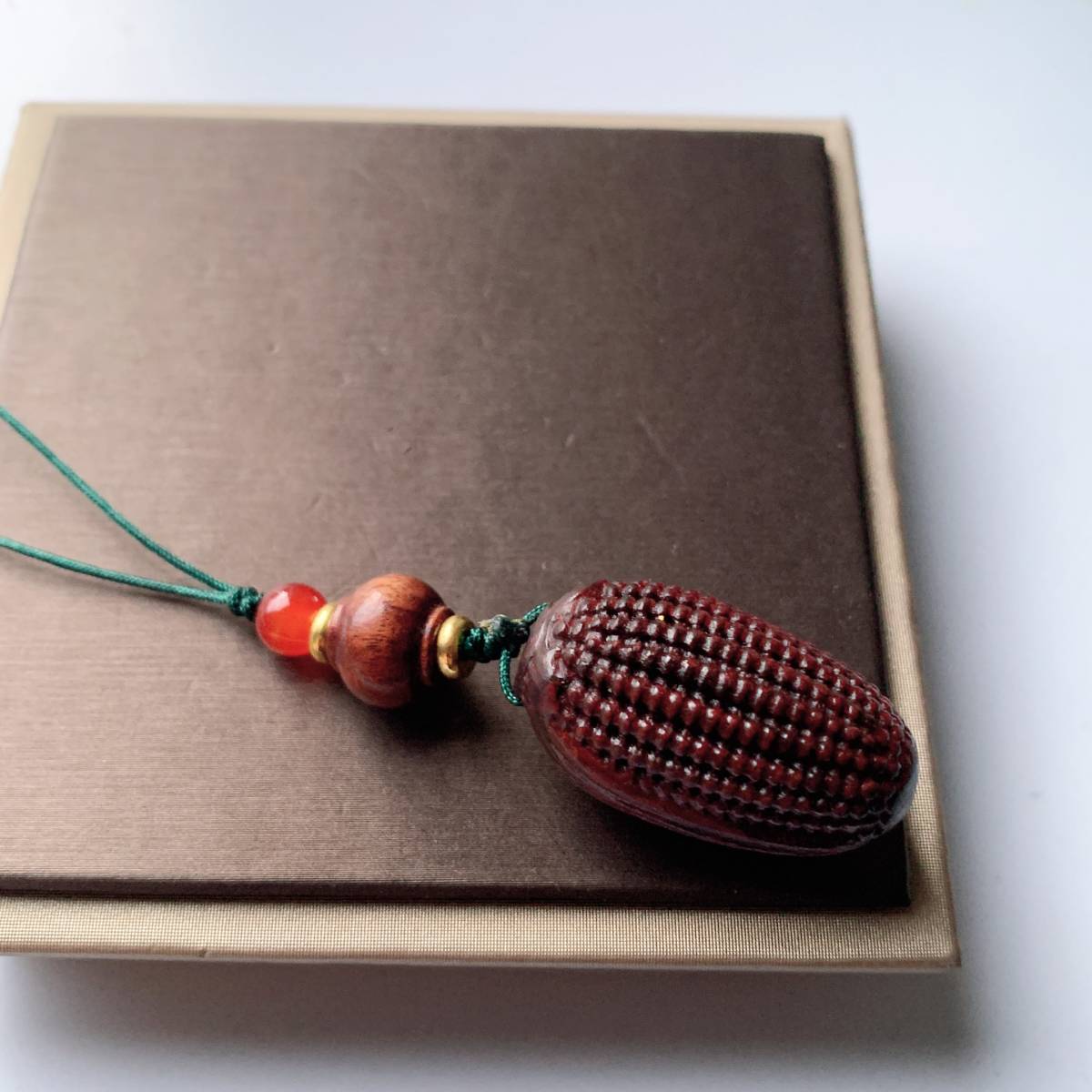 - ◇バッグチャーム◇檀木◇彫刻◇とうもろこし形◇キーホルダー◇巾着袋付き◇プレゼントにも 025A102006