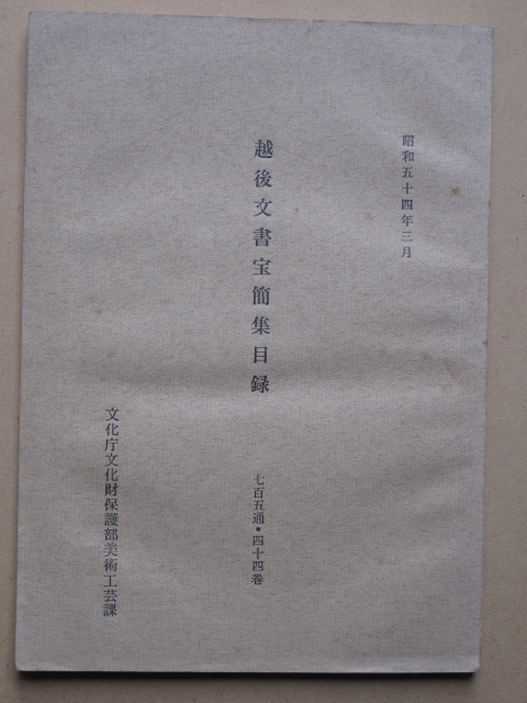 - 昭和54年 『 越後文書宝簡集目録 』ガリ版刷 中世文書 文化庁文化財保護部美術工芸課編集発行 国指定重要文化財 新潟県 長岡市 反町十郎