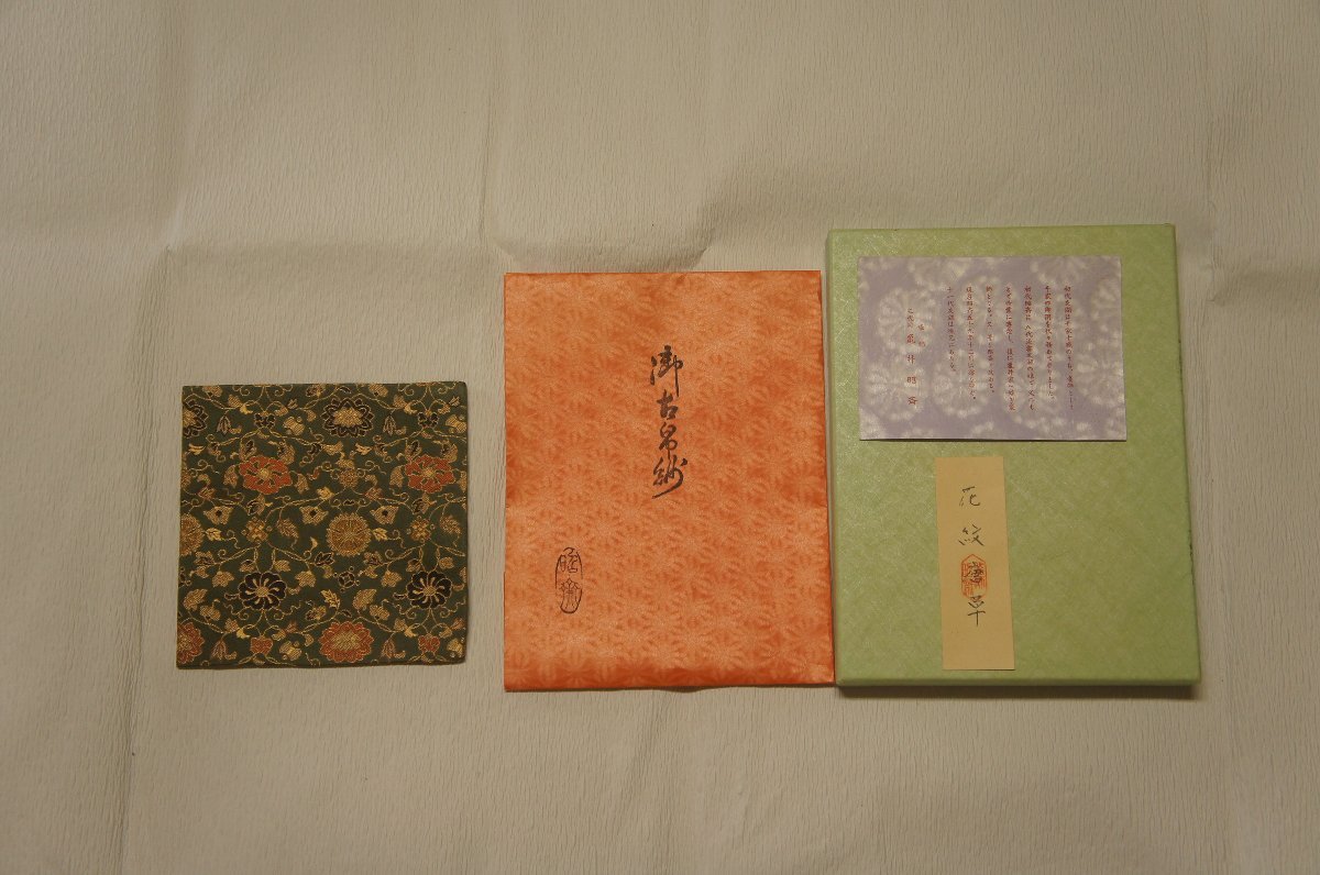 - お茶道具正絹『三代目亀井昭斉』作西陣織海松茶色地花紋唐草模様古帛紗[E14610]