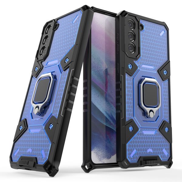 - A在庫処分 青 Galaxy S21+ 5G 指リング付き ケース 衝撃 カバー ギャラクシー S21 Plus SCG10 超頑丈 保護 丈夫 米軍 耐衝撃 スタンド機能